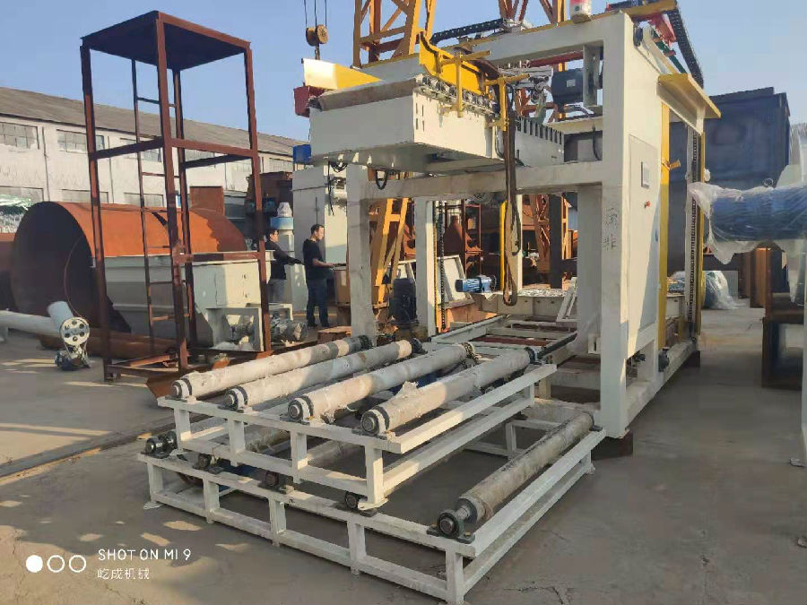 即將竣工的尉氏自動(dòng)碼垛干粉砂漿生產(chǎn)線采用的包裝機(jī)如上圖所示,只需要人工套袋到出料口,待包裝機(jī)包裝到定量設(shè)備的物料時(shí),會(huì)自動(dòng)將成品砂漿推送到輸送帶上,輸送帶將物料運(yùn)輸?shù)阶詣?dòng)碼垛機(jī)上。