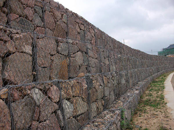 石籠網(wǎng)由高不腐蝕、高強度、具有延展性的低碳鋼絲或者包覆PVC的以上鋼絲使用機械編織而成,使用該網(wǎng)制作而成的箱型結構就是石籠。根據(jù)ASTM和EN標準,所使用的低碳鋼絲直徑根據(jù)工程設計要求而不同。一般介于2.0-4.0mm之間,石籠網(wǎng)鋼絲的抗拉強度不少于38kg/m2,金屬鍍層重量一般高于245g/m2,石籠網(wǎng)片的邊緣線直徑一般要大于網(wǎng)線直徑。其雙線絞合部分的長度不得小于50mm.以保證絞合部分鋼絲的金屬鍍層和PVC鍍層不受破壞。