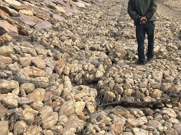 5.放置:綁好后,用機(jī)器小心將塞克格賓一個(gè)一個(gè)或兩個(gè)兩個(gè)的吊放到恰當(dāng)位置。為了保證質(zhì)量,石籠網(wǎng)縫邊、組裝時(shí)應(yīng)用粗的邊絲和綁絲。